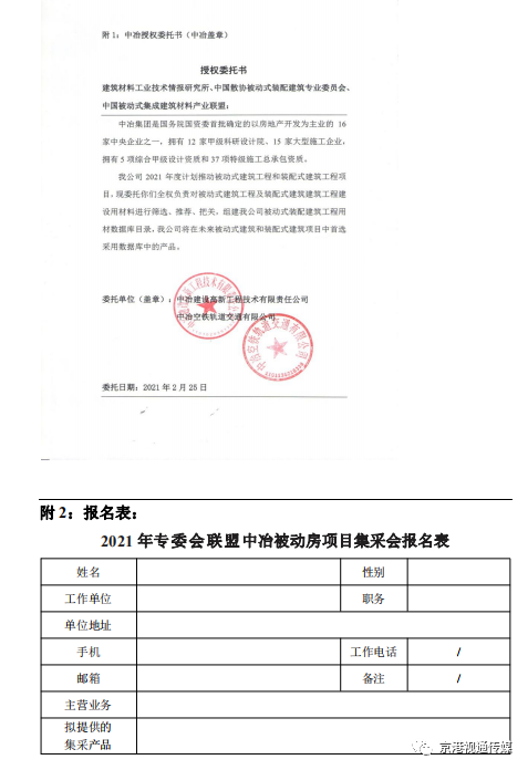 關于召開“中冶被動式裝配建筑項目建設用材集采會議”的通知