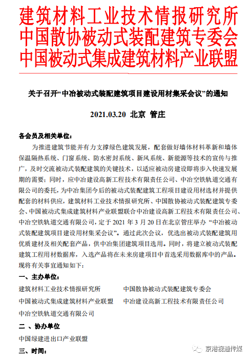 京港視通報道:關于召開“中冶被動式裝配建筑項目建設用材集采會議”的通知(圖文)